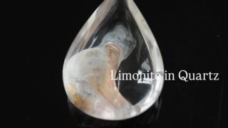 透明な 水晶 の中。ライモナイト が入り込んでできたライモナイトインクォーツ。ライモナイトは、鉄が水や空気と反応してできた鉄の鉱物のグループです。透明な水晶の中に、ミルキーな白と、やわらかなオレンジ色。この色の部分はライモナイトなどの鉄の鉱...