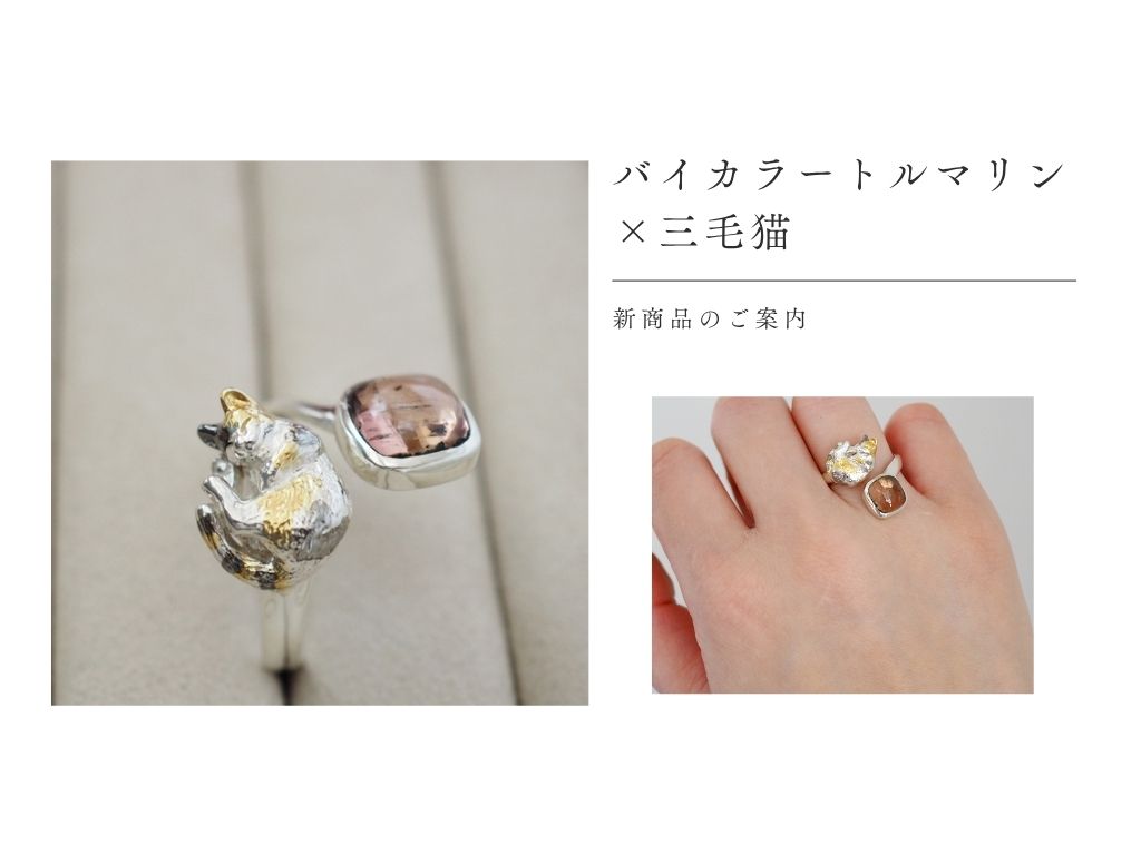バイカラートルマリン×三毛猫リング