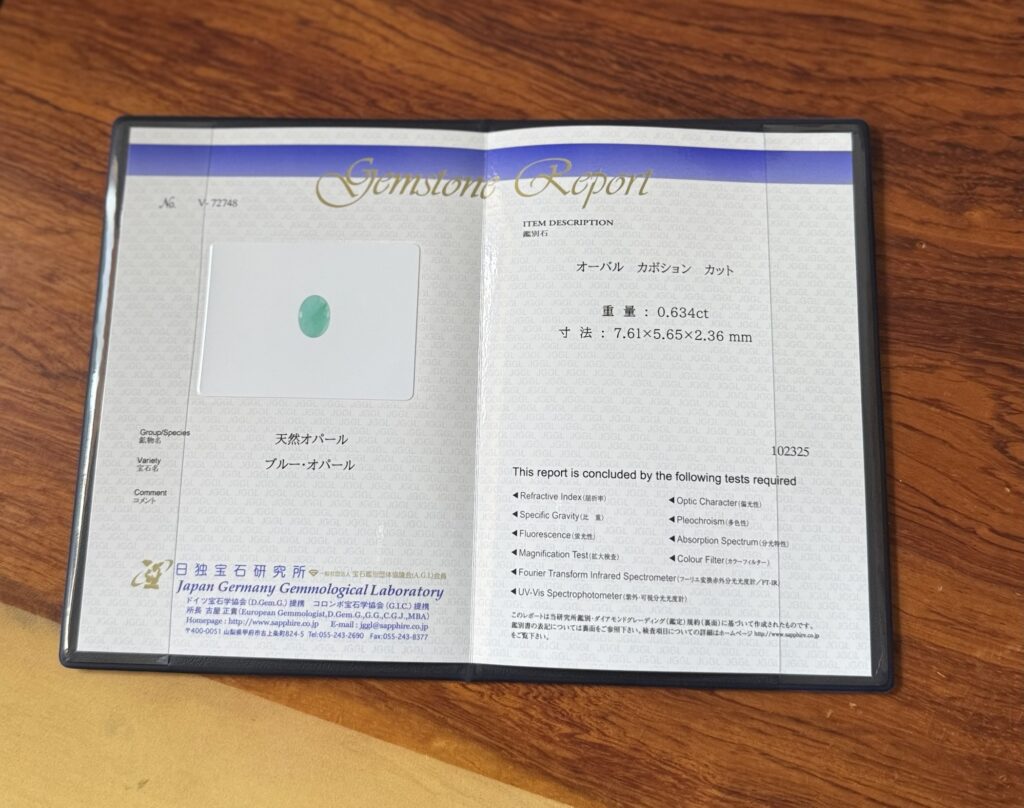 選んで頂いたオパールは少しグリーンかかった感じ。