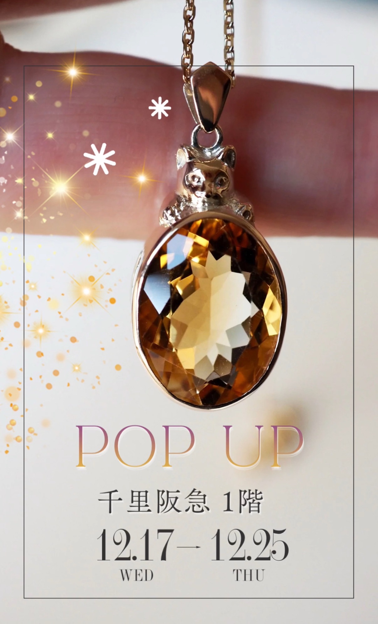 ガブリ噛み付く猫ペンダントはK10シトリン