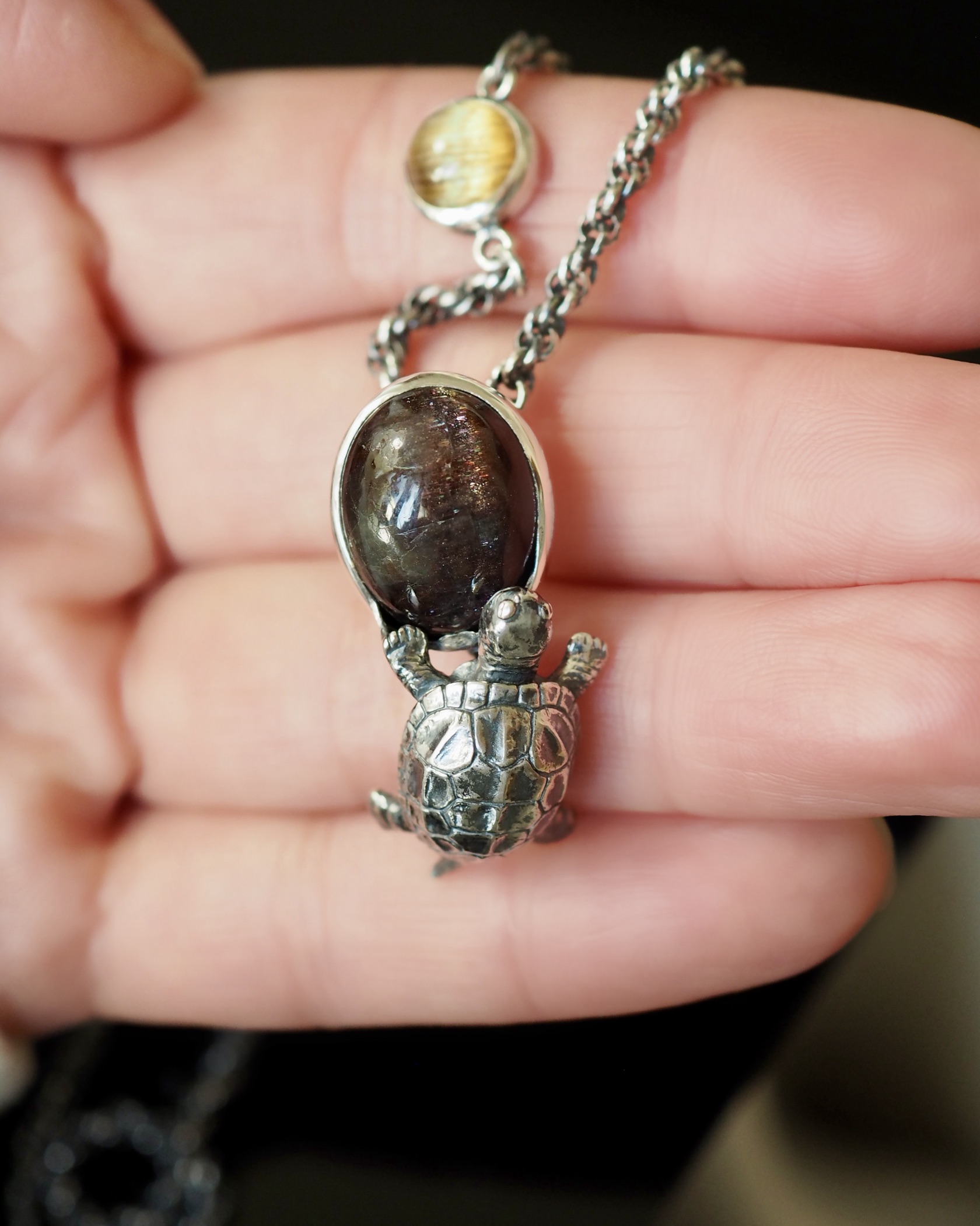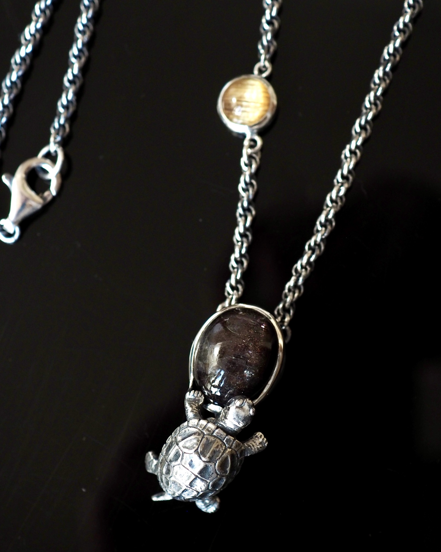 ルチルクォーツキャッツアイを亀と合わせたペンダント。