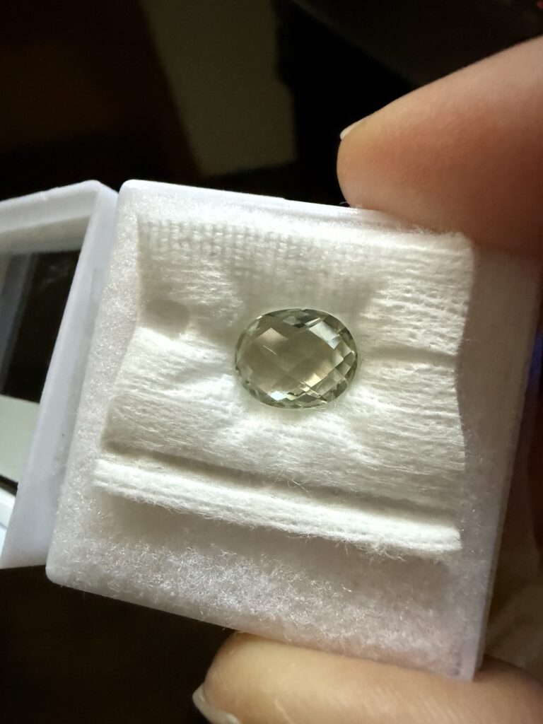 コーディネートしやすいように、と淡いカラーを探されていて、こちらのルースを選んでいただきました。