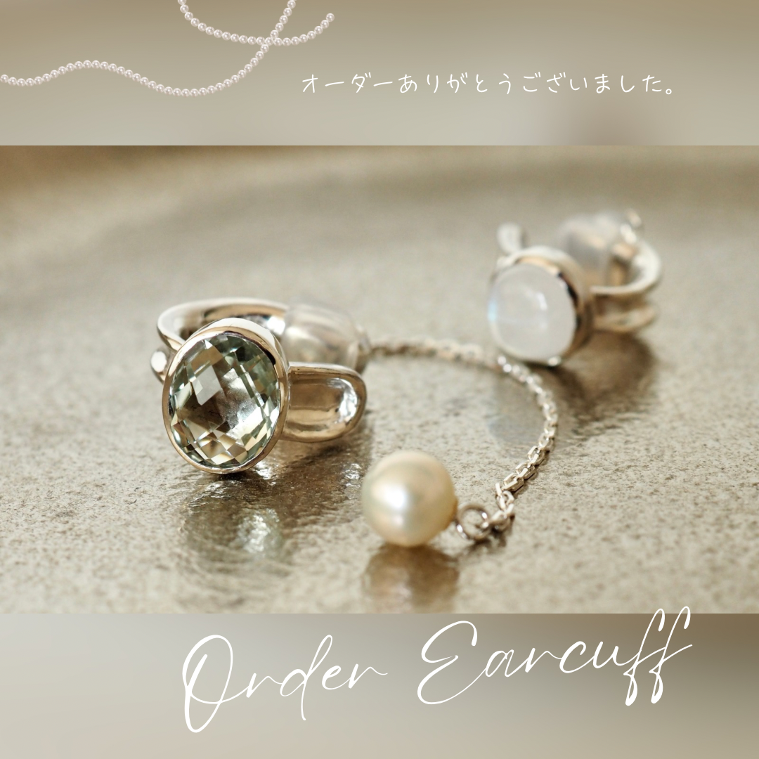 キラキラ美しいグリーンクオーツをイヤーカフに。オーダーいただきました。